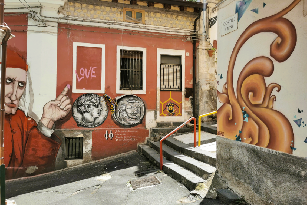 Lentini ci mostra come l’arte possa rigenerare spazi e creare nuove visioni di futuro. Il Parco Urbano d’Arte, con le sue oltre 40 opere di street art, diventa un museo a cielo aperto dove il linguaggio visivo si fa strumento di trasformazione sociale.